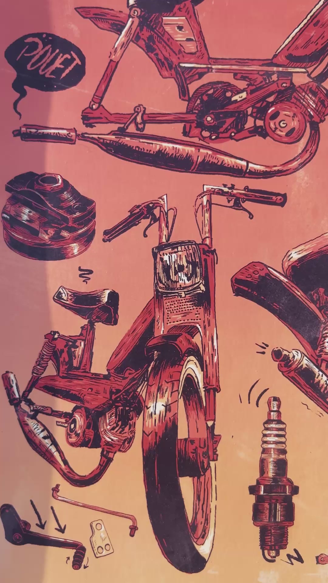 Illustration détaillée de ce scooter mythique, imprimé sur papier mat 200 g, au format A3